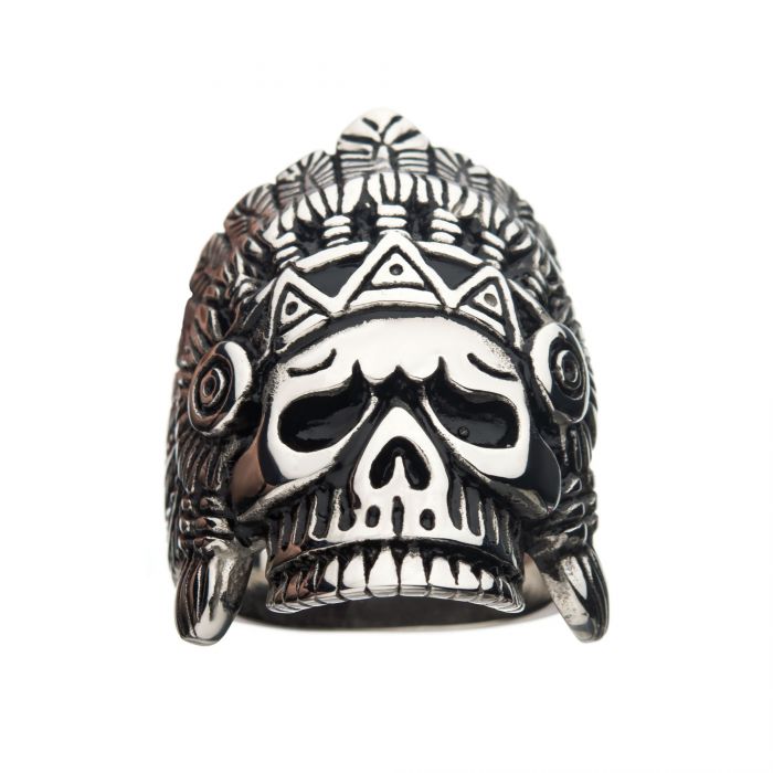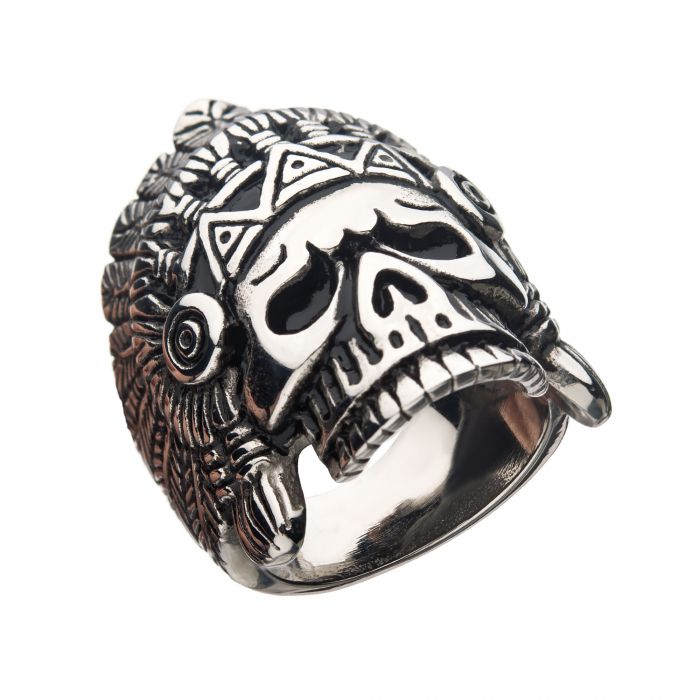 Men's Stainless Steel Oxidize Chief Skull Ring.